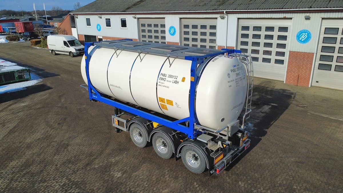 Typegodkendt: IMO type 4, RID/ADR-L4BN, UIC, TIR, CSC Længde: 7.820 mm Bredde: 2.550 mm Højde: 2.670 mm Stige Gangbro Gelænder CHASSIS SE REF. NO. 5972